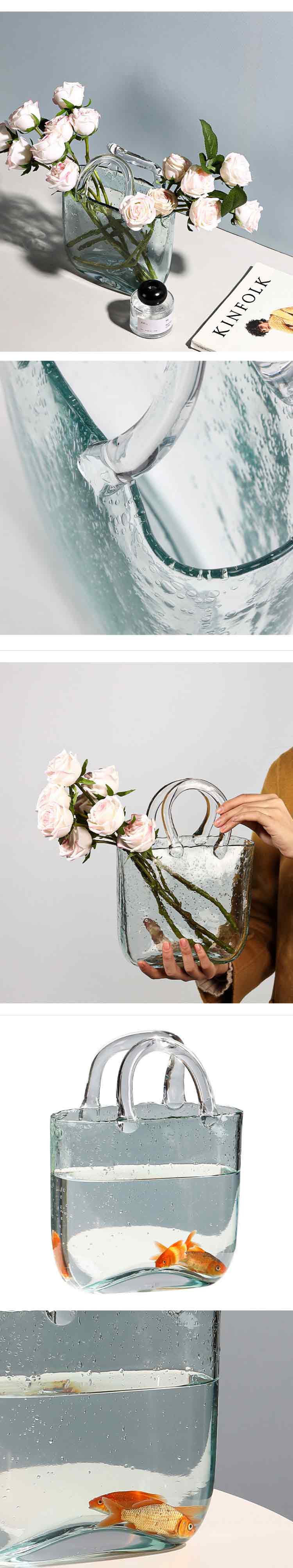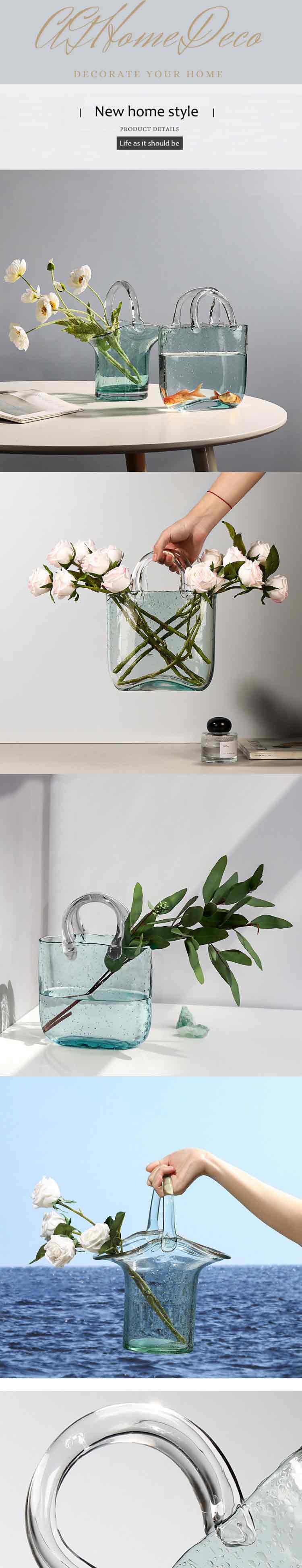 Nordic Glass Vase Decoration Transparent Creative Bubble Shopping Basket Bag Vase