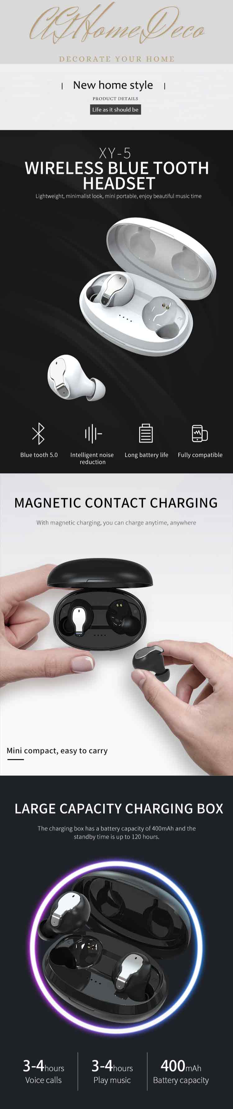 4. Battery: polymer lithium battery, earphone 50mah all-cobalt battery, charging box 420mah(with guard plate)