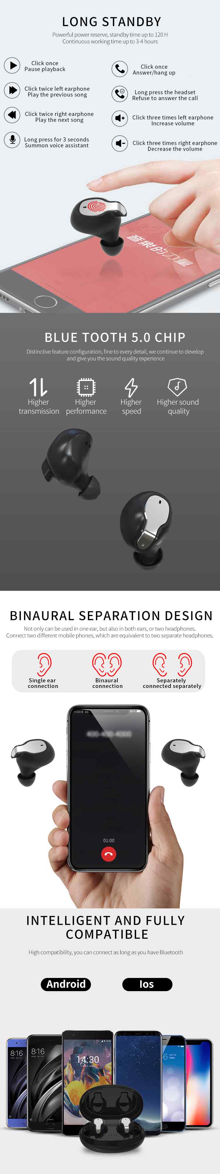 6. Standby time: one earplug for 100H and two earplugs for 60H